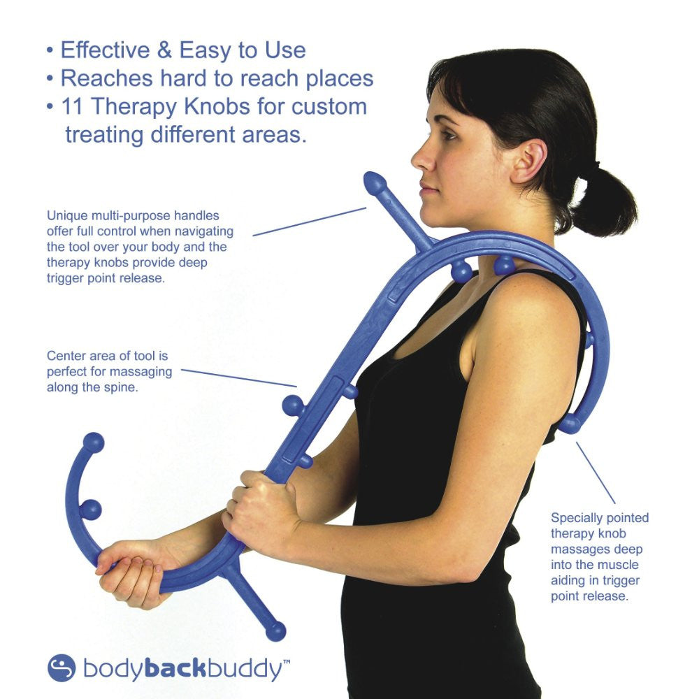 • The Body Back Buddy trigger point massager is designed to help you self-massage any area of your body especially hard to reach areas such as between your shoulder blades or in your back. Keeping your muscles relaxed and out of contraction is important in helping to reduce pain and prevent muscle injury.
